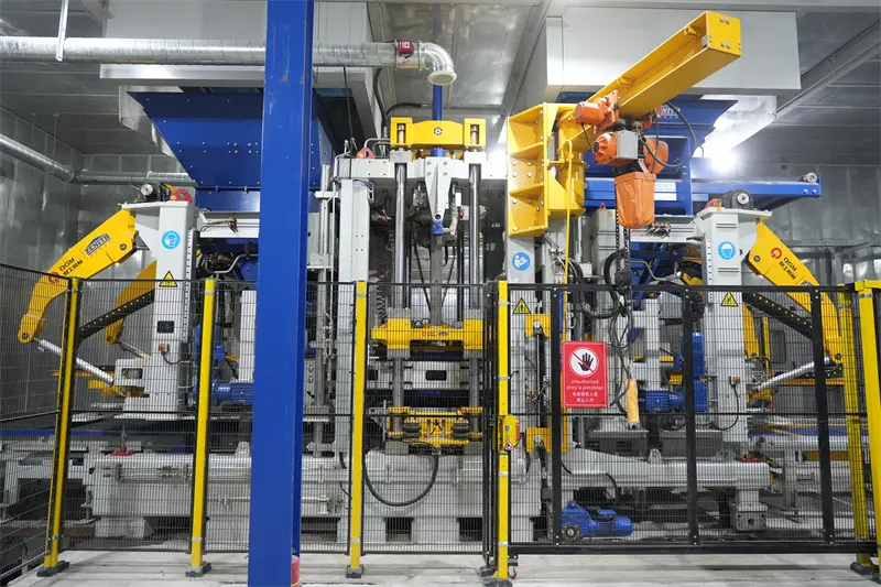 Podstawowym wyposażeniem linii produkcyjnej jest nowo opracowana przez QGM maszyna do formowania bloków ZN1500-2C, która integruje szereg opatentowanych technologii. Sprzęt wyposażony jest w inteligentny system szybkiej wymiany formy, który pozwala szybko przestawić się na produkcję różnorodnych produktów, takich jak cegły chodnikowe i cegły przepuszczalne; w oparciu o przemysłową platformę internetową realizuje monitorowanie w czasie rzeczywistym i inteligentną analizę danych produkcyjnych, skraca czas reakcji na ostrzeżenia o awariach urządzeń o 60% oraz znacznie poprawia efektywność pracy i konserwacji.
