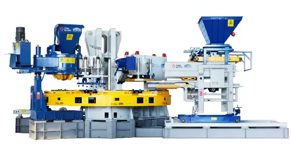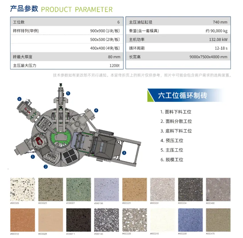 Prasa statyczna ze stołem obrotowym HP-1200T w kreatywny sposób dzieli proces wytwarzania cegieł na 7 stacji, rozmieszczonych w układzie kołowym, zmniejszając powierzchnię podłogi, a także ma dużą powierzchnię formowania i zakres wysokości formowania, zapewniając, że różnorodne wymagania klientów dotyczące bloczków betonowych imitujących kamień są spełnione, wypełniając lukę w domowych siedmiopozycyjnych maszynach obrotowych z imitacją kamienia. Opracowany przez nią standard grupowy „T/CCMA 0125-2022 Obrotowa wielostanowiskowa prasa statyczna maszyna do formowania bloków betonowych” został wybrany jako jeden ze 100 projektów demonstracyjnych standardowych zastosowań grupowych Ministerstwa Przemysłu i Technologii Informacyjnych w roku 2023.