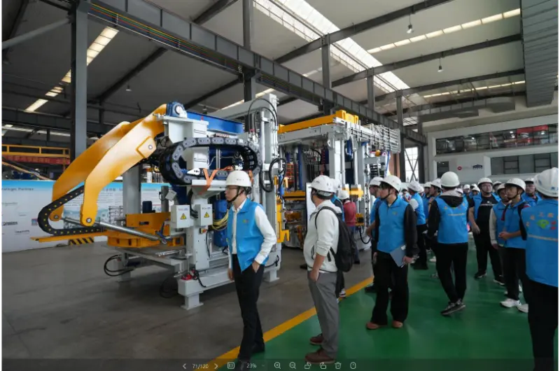 W warsztacie produkcji sprzętu odwiedzający zwiedzili laboratorium, warsztat montażowy i warsztat debugowania, poznając cały proces, od analizy surowców po kompletne zestawy zautomatyzowanego sprzętu do wytwarzania bloków. Na przykładowym obszarze zaprezentowano różne specyfikacje i zastosowania produktów wytwarzanych przy użyciu maszyn do produkcji cegieł firmy, w tym cegły ścienne wewnętrzne i zewnętrzne, cegły chodnikowe i krawężniki zewnętrzne, materiały do ochrony wody i przeciwpowodziowe, ekologiczną ochronę skarp i ściany oporowe grawitacyjne. W sali konferencyjnej wyświetlony został film promocyjny firmy.