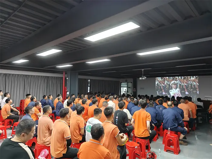 3 września był dniem o wielkim znaczeniu dla całego narodu chińskiego. W ten wyjątkowy dzień prezes Fujian Quangong Machinery Co., Ltd. Fu Binghuang i dyrektor generalny Fu Xinyuan poprowadzili wszystkich pracowników w sali konferencyjnej firmy, aby obejrzeli wielką paradę wojskową i byli świadkami tego ekscytującego historycznego momentu.