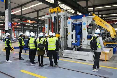 Wchodząc do inteligentnych warsztatów produkcyjnych QMG, odwiedzający zaobserwowali w pełni automatyczną maszynę do formowania bloków z bliska. Korpus maszyny ważący setki ton, system hydrauliczny z precyzyjną transmisją, jednostka pleśni z konfigurowalnym przełączaniem ... „Ten sprzęt szybko dostosowuje się do potrzeb klientów poprzez modułową konstrukcję. Wiceprezydent i jego partia wysoce rozpoznali modele z podwójnym napędem w sieci Building Model z podwójnym napędem. "