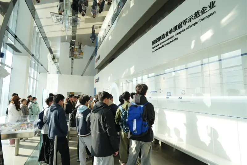 Wejście do Quangong Machinery Co., Ltd.w sali wystawowej poświęconej historii rozwoju, seria cennych starych fotografii i modeli historycznych urządzeń stanowiła kronikę drogi firmy od jej założenia w 1979 roku do dnia dzisiejszego. Od początków swojej działalności jako małej fabryki maszyn do inżynierii komunalnej do obecnego statusu wzorca branżowego z zagranicznymi spółkami zależnymi, takimi jak Zenith w Niemczech, oraz licznych wyróżnień, w tym bycia jedną z pierwszych partii „Chińskich przedsiębiorstw demonstracyjnych pojedynczego mistrza produkcji” uznanych przez Ministerstwo Przemysłu i Technologii Informacyjnych, ścieżka rozwoju Quangong Machinery Co., Ltd. pozwoliła wykładowcom i studentom głęboko docenić zaangażowanie i innowacyjność stojącą za filozofią biznesową mówiącą, że „jakość określa wartość, profesjonalizm buduje sukces”. Przewodnik firmowy zawierał szczegółowe wyjaśnienia dotyczące przełomów technologicznych i iteracji produktów na każdym etapie rozwoju. Wspominając przełomowe wydarzenia, takie jak opracowanie pierwszej „w pełni automatycznej wieloczęściowej maszyny do produkcji cegieł” w Chinach w 2000 r. i pierwszej wyprodukowanej w kraju maszyny do produkcji suchej zaprawy w 2004 r., publiczność często wyrażała podziw, dzięki czemu uczniowie mogli lepiej zrozumieć trajektorię rozwoju inteligentnego przemysłu produkcyjnego.