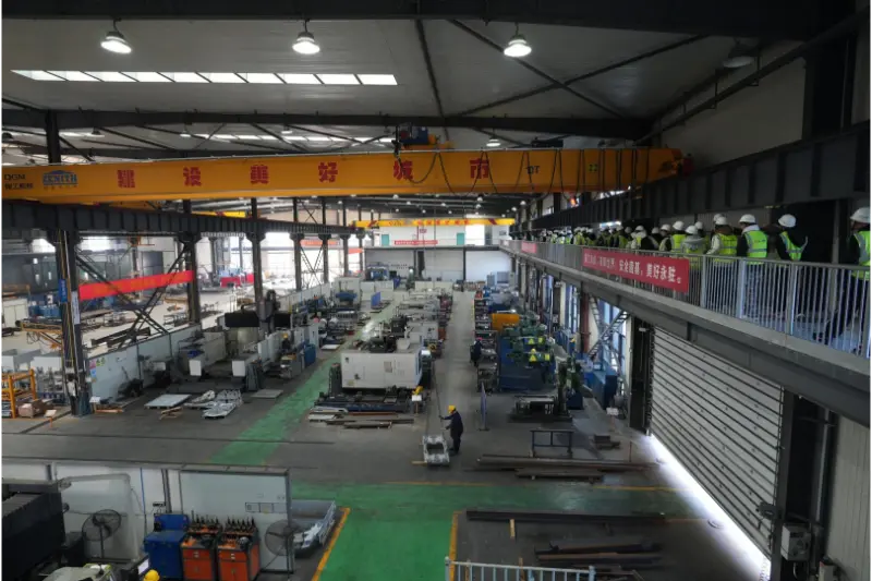 Następnie nauczyciele i uczniowie odwiedzili warsztat obróbki skrawaniem, wkraczając na linię frontu inteligentnej produkcji. W warsztacie z dużą prędkością pracowały centra obróbcze CNC i zautomatyzowane linie montażowe, zrobotyzowane ramiona precyzyjnie wykonujące różne operacje, a cyfrowy system produkcyjny wyświetlał w czasie rzeczywistym dane dotyczące postępu produkcji i monitorowania jakości, demonstrując synergiczny efekt „zielonej fabryki” i „inteligentnego warsztatu”. Eksperci techniczni firmy przeprowadzili nauczycieli i uczniów przez cały proces, od przetwarzania surowców po montaż sprzętu, koncentrując się na wyjaśnieniu zastosowania kluczowych technologii, takich jak wzajemne połączenie sprzętu CNC i precyzyjne wykrywanie stanu produkcji. Studenci aktywnie współpracowali z ekspertami technicznymi, omawiając takie kwestie, jak optymalizacja przetwarzania i techniki konserwacji sprzętu, tworząc w miejscu pracy dobrą atmosferę do nauki.